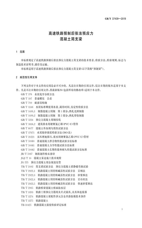 GB/T37439-2019高速鐵路預(yù)制后張法預(yù)應(yīng)力混凝土簡支梁新執(zhí)行標(biāo)準(zhǔn)